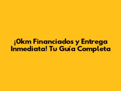 ¡0km Financiados Y Entrega Inmediata! Tu Guía Completa