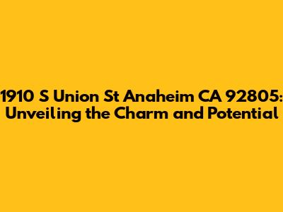 Let's dive into everything you need to know about 1910 S Union St, Anaheim, CA 92805. This address isn't just a set of numbers; it's a gateway to understanding a specific property and its surrounding environment. Whether you're a prospective buyer, a curious neighbor, or simply doing some real estate research, having detailed information about a property is crucial. We're going to break down what makes this location unique, covering aspects from its physical attributes to the neighborhood vibe. Think of this as your comprehensive guide to getting the inside scoop on 1910 S Union St.
