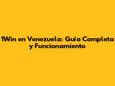 1Win En Venezuela: Guía Completa Y Funcionamiento