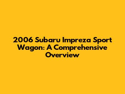 2006 Subaru Impreza Sport Wagon: A Comprehensive Overview