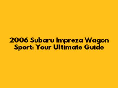 2006 Subaru Impreza Wagon Sport: A Comprehensive Guide