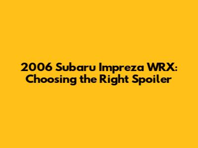 2006 Subaru Impreza WRX: Choosing The Right Spoiler