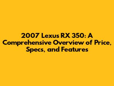 Hey car enthusiasts! Today, we're diving deep into the 2007 Lexus RX 350, a vehicle that's still turning heads and proving its worth years after its release. Let's explore the original price, specifications, and features that made this luxury SUV a popular choice. We'll also touch on what makes it a great used car buy today. So, buckle up, and let's get started!