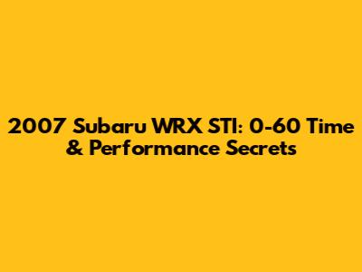 2007 Subaru WRX STI: 0-60 Time & Performance Secrets