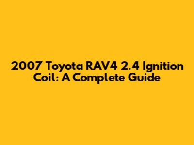 Understanding Your 2007 Toyota RAV4 2.4 Ignition System