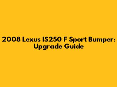 Hey there, Lexus enthusiasts! Are you looking to give your 2008 Lexus IS250 a fresh, sporty makeover? Swapping out your bumper for an F Sport version is a fantastic way to achieve that aggressive, head-turning look. In this comprehensive guide, we'll walk you through everything you need to know about upgrading your 2008 Lexus IS250 with an F Sport bumper. We'll cover compatibility, the installation process, where to find the right parts, and even some tips to ensure a seamless and stylish upgrade. Let's dive in!