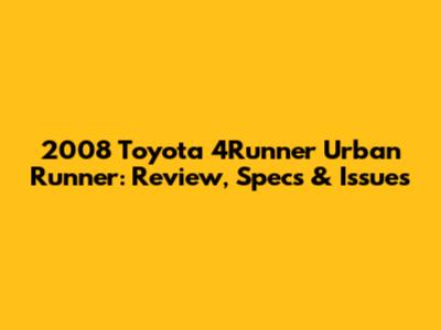 Hey guys! Let's dive into the 2008 Toyota 4Runner Urban Runner, a vehicle that blends ruggedness with a touch of city style. This model year has a lot to offer, but like any car, it has its quirks. We'll explore everything from its specs and reliability to common problems and what owners are saying. Buckle up!