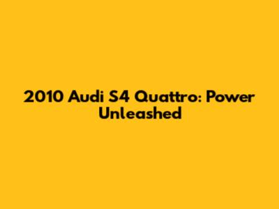 2010 Audi S4 Quattro: Power, Performance, And Specs