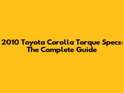 2010 Toyota Corolla Torque Specs: The Complete Guide