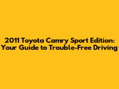 2011 Toyota Camry Sport Edition: Problems & Solutions