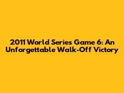 Hey baseball fanatics! Let's rewind the clock and dive deep into one of the most electrifying and unforgettable moments in World Series history: Game 6 of the 2011 World Series. This wasn't just any game; it was a rollercoaster of emotions, a testament to the never-say-die spirit of the St. Louis Cardinals, and a heartbreaker for the Texas Rangers. This game had everything you could ask for: dramatic swings, clutch hits, and a walk-off finish that etched itself into baseball lore. Buckle up, because we're about to relive the magic!