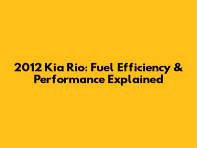 2012 Kia Rio: Fuel Efficiency & Performance Explained