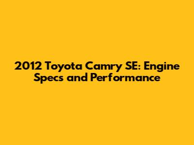 2012 Toyota Camry SE: Engine Specs And Performance