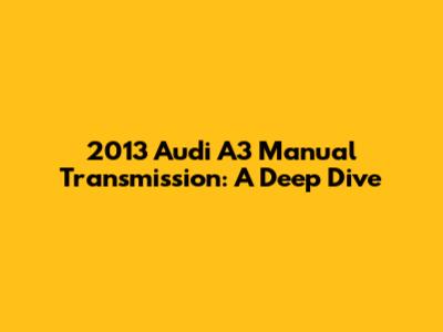 While these issues are not necessarily widespread, they are worth considering when evaluating a 2013 Audi A3 manual transmission. Regular maintenance and prompt attention to any unusual symptoms can help minimize the risk of these problems and keep your A3 running smoothly.