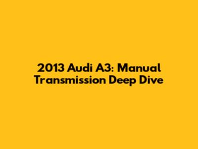 Understanding the 2013 Audi A3 Manual Transmission