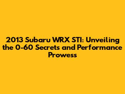 Hey everyone! Today, we're diving headfirst into the world of the 2013 Subaru Impreza WRX STI, a car that's legendary for its performance, especially its blistering 0-60 mph acceleration. We'll be breaking down everything you need to know about its speed, engine, handling, and what makes it such a beloved machine among car enthusiasts. Buckle up, because we're about to go fast!