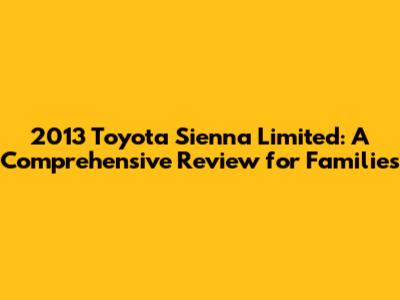 Hey guys! Let's dive into a review of the 2013 Toyota Sienna Limited, a minivan that's been a family favorite for years. If you're in the market for a spacious, reliable, and feature-packed vehicle to haul your crew around, you're in the right place. We'll cover everything from the performance and features to the pros and cons, helping you decide if this minivan is the right fit for your family's needs. The Sienna Limited in 2013 was, and still is, a strong contender in the minivan segment. Its blend of comfort, practicality, and Toyota's renowned reliability makes it a compelling choice, even years after its release. So, buckle up, and let's explore what makes this minivan tick!