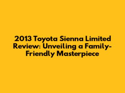 Hey guys! Let's dive deep into the 2013 Toyota Sienna Limited, a minivan that has, for years, been a top contender in the family vehicle game. We'll explore everything from its features and specs to its performance and overall value. Is this minivan a good buy in today's market? Let's find out! This review is designed to give you a comprehensive understanding of what makes the Sienna Limited stand out and whether it's the right choice for your family. We'll cover everything from the exterior design to the interior comfort and technology, ensuring you have all the information you need before making a decision. Ready? Let's get started!