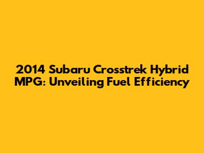 2014 Subaru Crosstrek Hybrid MPG: What You Need To Know