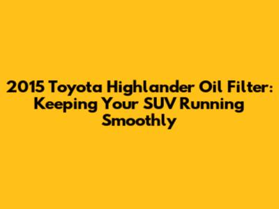 2015 Toyota Highlander Oil Filter: Your Guide To A Smooth Ride