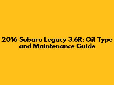 2016 Subaru Legacy 3.6R: Oil Type And Maintenance Guide