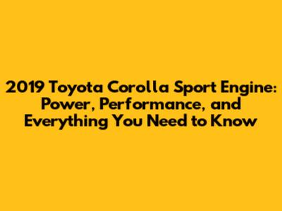 2019 Toyota Corolla Sport Engine: Specs, Performance & More