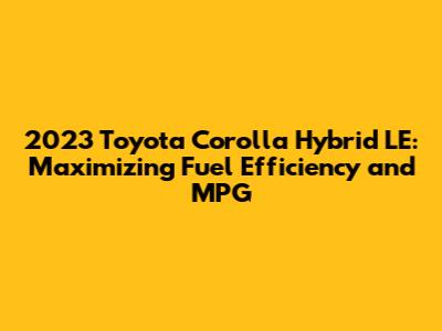 2023 Toyota Corolla Hybrid LE: Fuel Efficiency & MPG