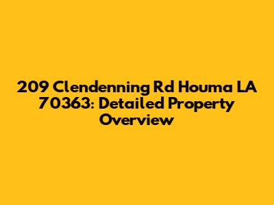 Hey guys! Today, we're diving deep into everything you need to know about the property located at 209 Clendenning Rd, Houma, LA 70363. Whether you're a potential buyer, a neighbor, or just curious about real estate in the area, this comprehensive overview will provide you with all the essential details. We'll explore the location, property characteristics, local amenities, and much more to give you a complete picture of what this address has to offer. So, let's get started and uncover the hidden gems of 209 Clendenning Rd!