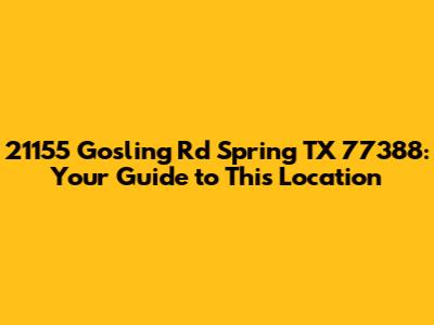 Alright, guys, let's dive into everything you need to know about 21155 Gosling Rd, Spring, TX 77388. Whether you're trying to find it, learn more about the area, or just curious, we've got you covered. This spot in Spring, Texas, is more than just an address; it's a place with its own story and surroundings. So, let’s get started and explore what makes this location tick.
