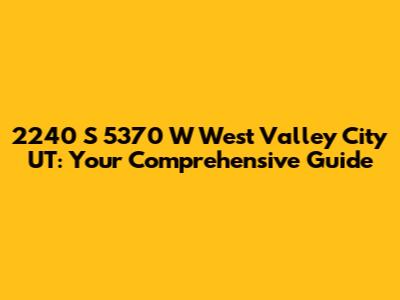 2240 S 5370 W, West Valley City, UT: Info & Guide