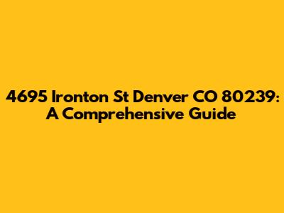 Hey guys! Are you looking for information on 4695 Ironton St in Denver, CO 80239? You've come to the right place! This guide provides a detailed overview of this address, covering everything from its location and neighborhood to potential real estate opportunities and local amenities. Whether you're a prospective buyer, a curious neighbor, or just someone interested in Denver real estate, let's dive in!