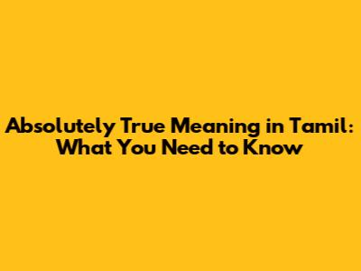 Absolutely True Meaning In Tamil: What You Need To Know