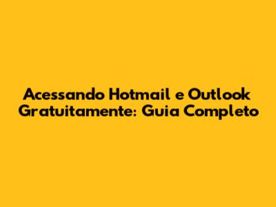 Acessando Hotmail E Outlook Gratuitamente: Guia Completo