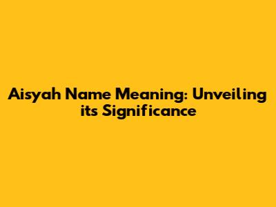 Aisyah Name Meaning: Unveiling Its Significance