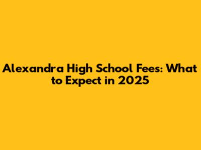 Alexandra High School Fees: What To Expect In 2025