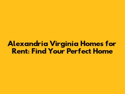 Alexandria VA Homes For Rent: Find Your Perfect Home