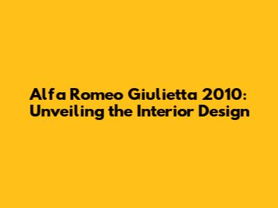 Alfa Romeo Giulietta 2010: A Deep Dive Into The Interior