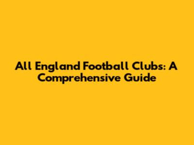 All England Football Clubs: A Comprehensive Guide