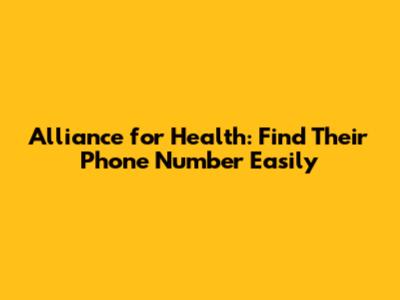 Alliance For Health: Find Their Phone Number Easily