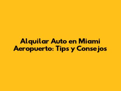 Alquilar Auto En Miami Aeropuerto: Tips Y Consejos