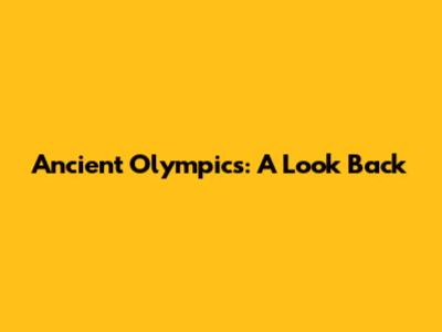 Ancient Olympics: A Look Back