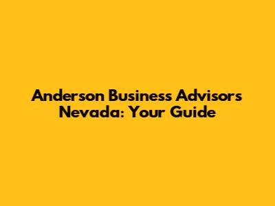 Anderson Business Advisors In Nevada: Your Guide