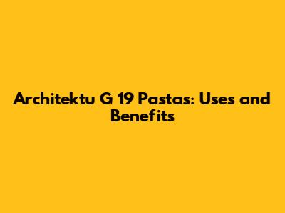 Architektu G 19 Pastas: Uses And Benefits