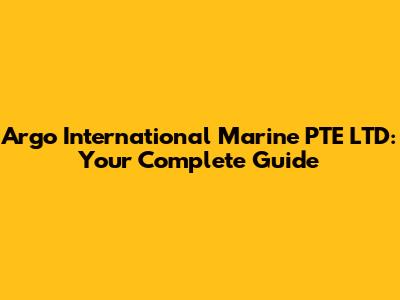 Argo International Marine PTE LTD: Your Complete Guide