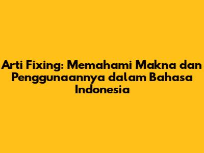Arti Fixing: Memahami Makna Dan Penggunaannya
