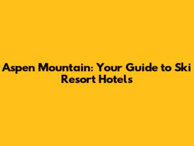 Aspen Mountain: Your Guide To Ski Resort Hotels