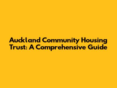 Auckland Community Housing Trust: Your Guide