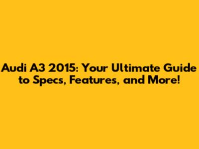 Audi A3 2015: Specs, Features & More!
