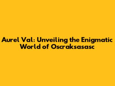Aurel Val: Unveiling The Enigmatic World Of Oscraksasasc