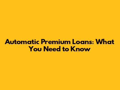 Automatic Premium Loans: What You Need To Know